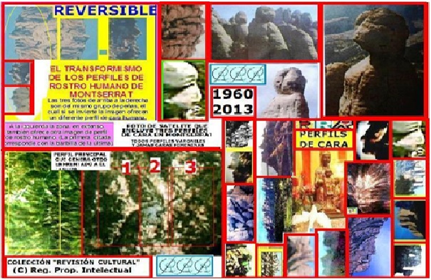 Ya me ocupé de analizar fisionómicamente un rostro al auto editar mi libro "La Cara Humana de Montserrat" (1990). De su entorno, y también de las muchas pareidolias de la zona de Jerusalén observados en las fotos de satélite. Incluyo pruebas de que en ambas latitudes se dan una mayor concentración de sugerentes perfiles de rostro humano, incluso a veces superpuestos o enlazados. Muchos de ellos evito incluirlos, por ser menos reconocibles. Por otra parte, incluirlos todos tampoco podría hacerlo. En esta página informo de una mínima parte de mi muy extensa colección.